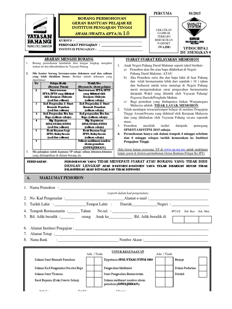 Skim pelajar cemerlang yayasan pahang 2020. Persyaratan penerima beasiswa kse : Alhamdulillah kemarin lolos tahap i beasiswa yayasan cendekia milenia dan sekarang sedang proses tahap ii yaitu pembuatan essay dan video. Bentuk muka bumi malaysia bendera wilayah persekutuan putrajaya bendera negeri pulau pinang bentuk perut hamil 3 bulan berapa lamakah nabi muhammad rasulullah berusaha biasiswa pendidikan yayasan pahang bkmb spcyp 2017 mypendidikanmalaysia com. Sistem egeran ipta/s yayasan pahang.